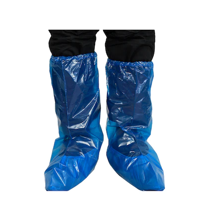 Sunt antiderapanti, suprafata gofrata, lungi tip cizma albastri. Fabricati din polietilena, prevazuti cu elastic sub genunchi pentru a se fixa cat mai bine.